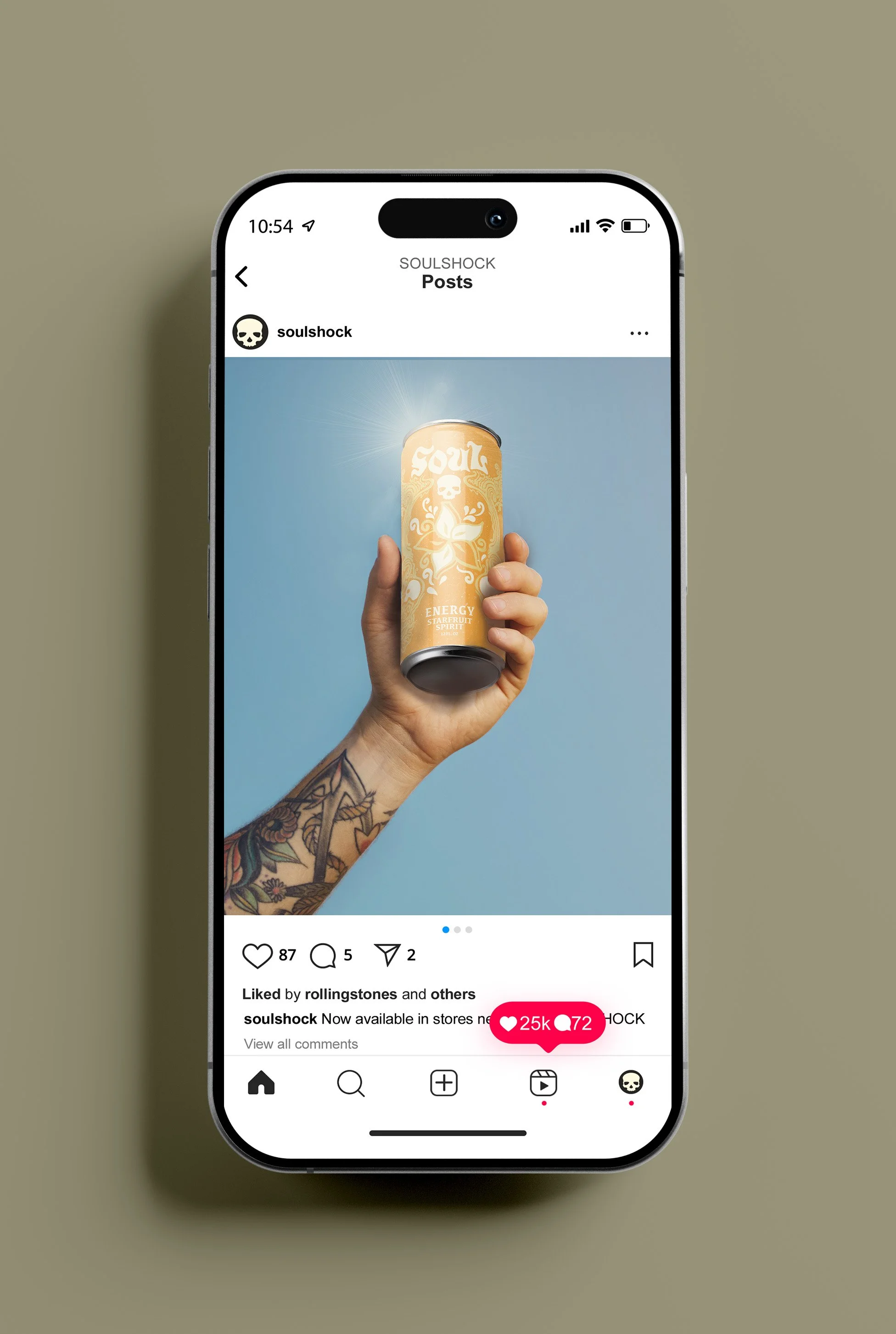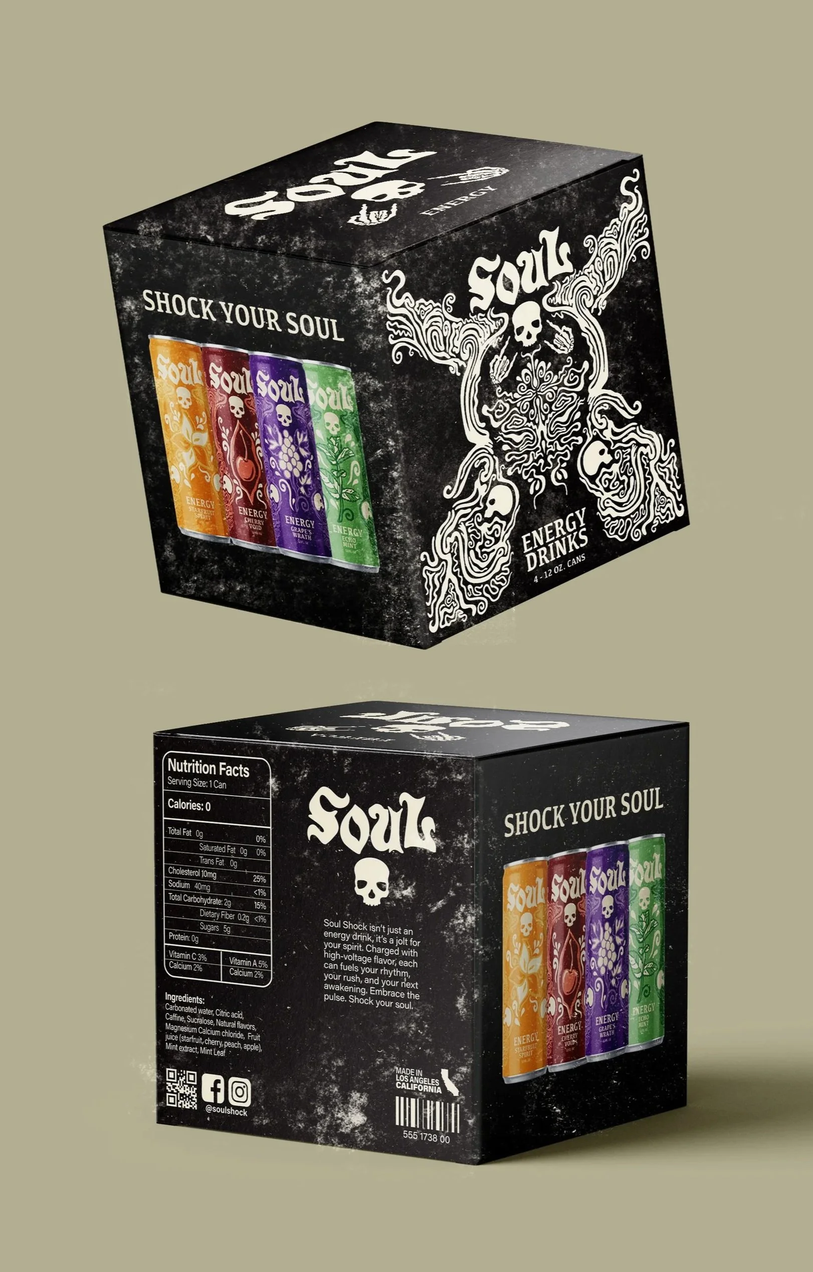 SOUL is an all-natural energy drink brand featuring psychedelic rock and roll influence based in Los Angeles, California.