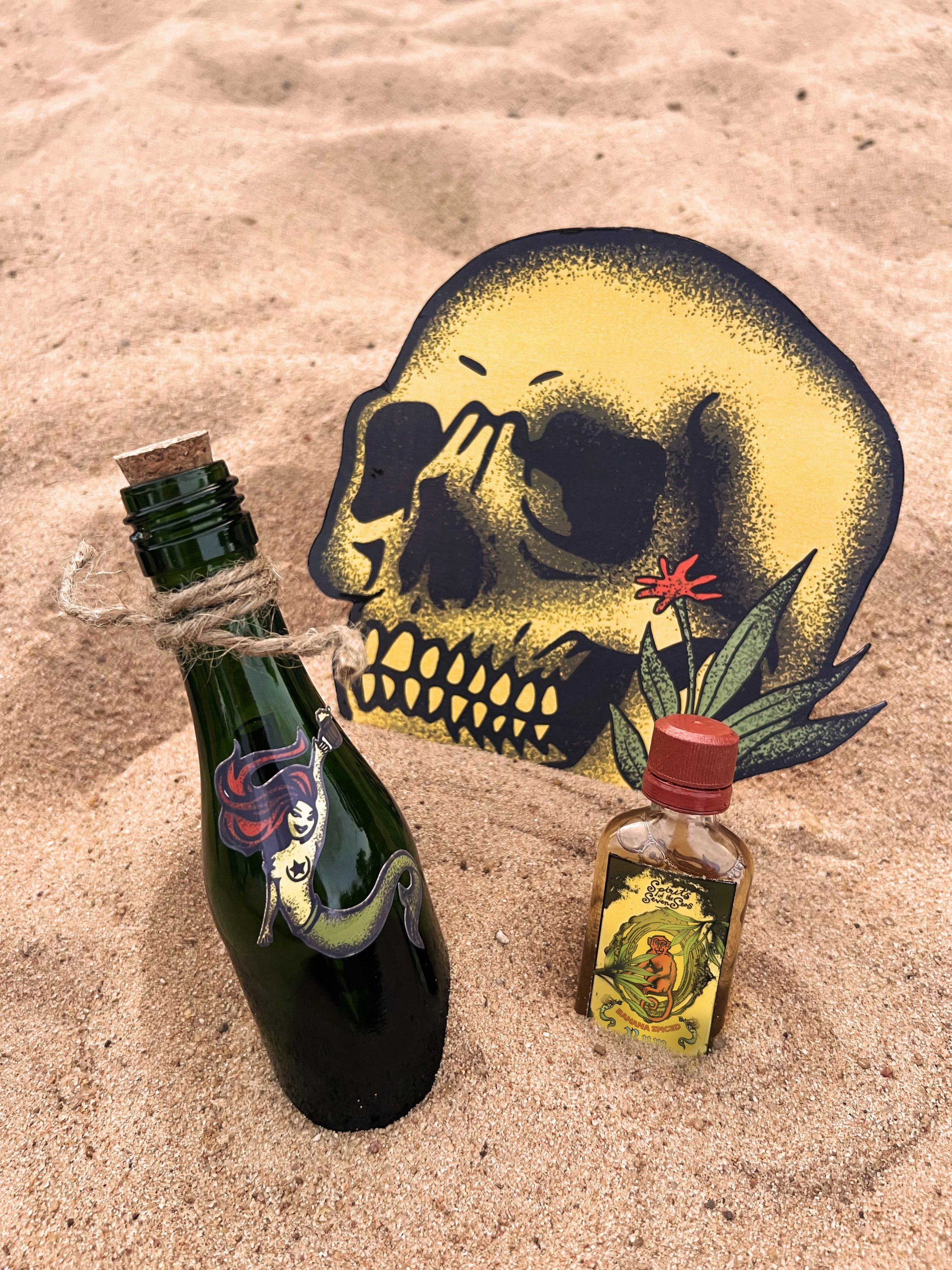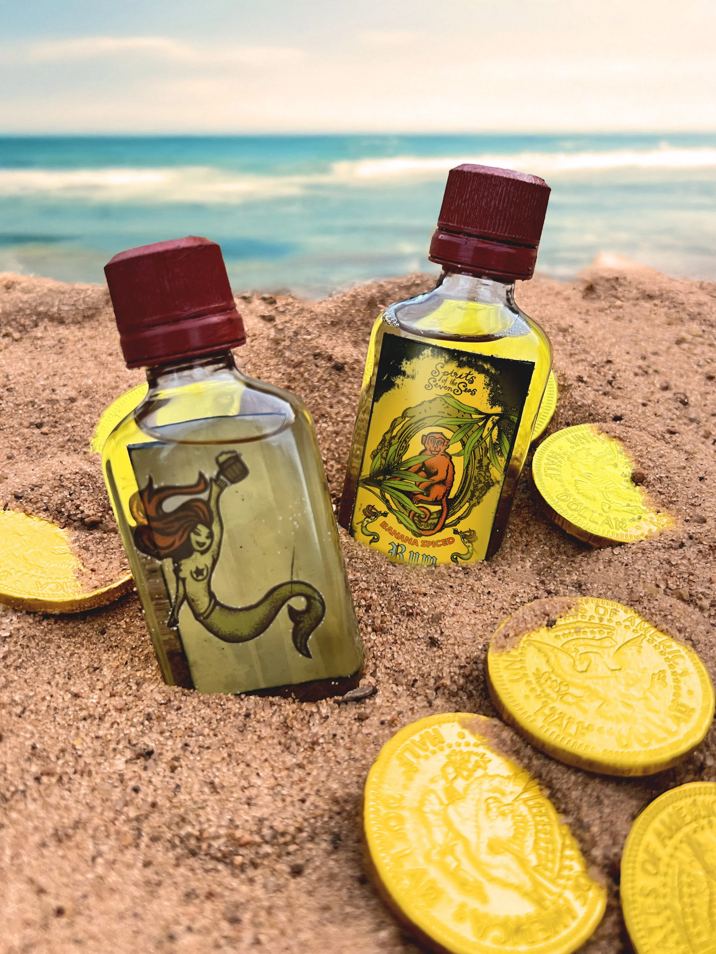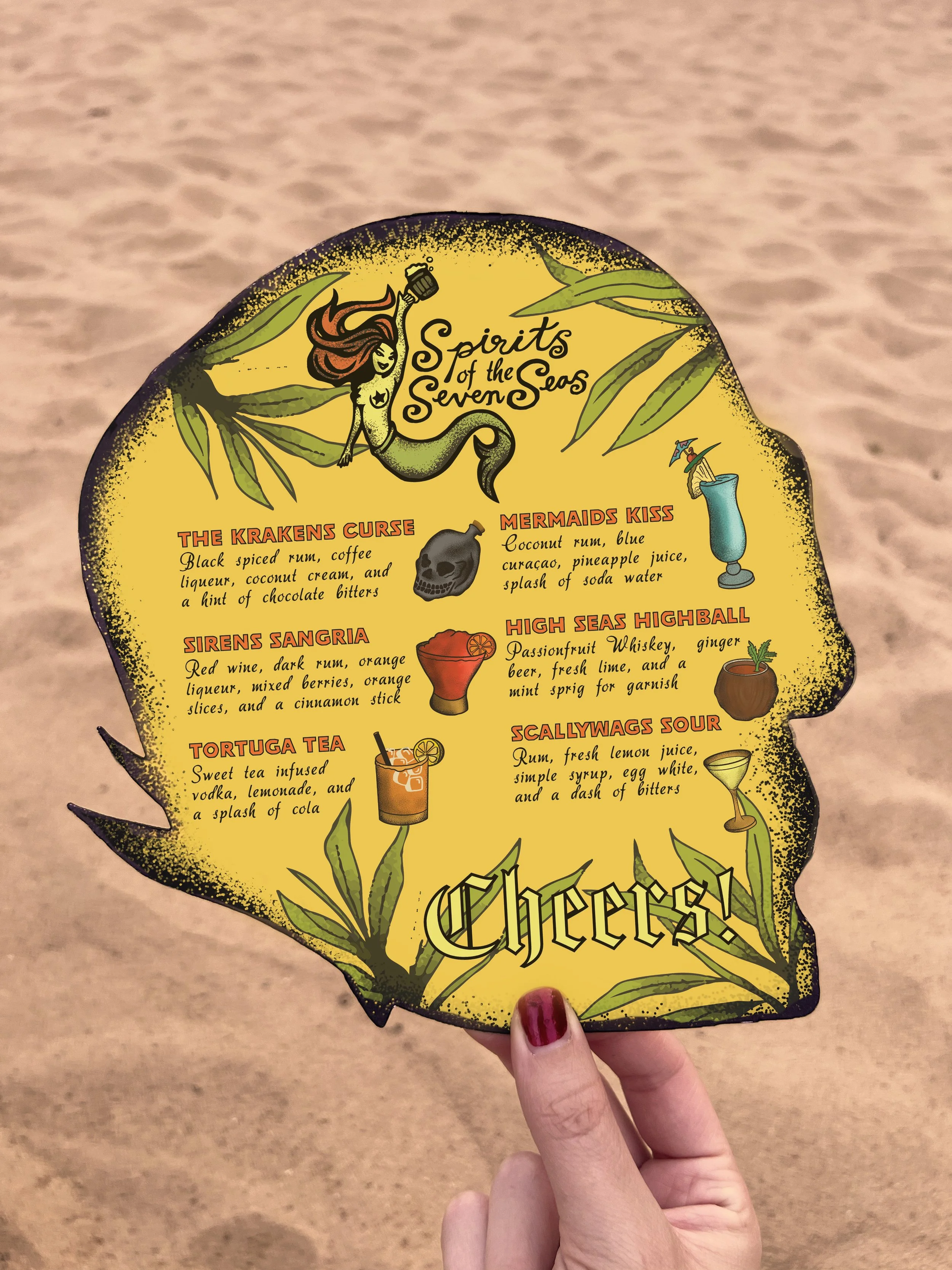 Invitation box for a fictional booze-filled sailing expedition aboard the Black Kraken. Featuring a message invitation in a bottle, rum shooters, a map of the route, and a craft cocktail menu.